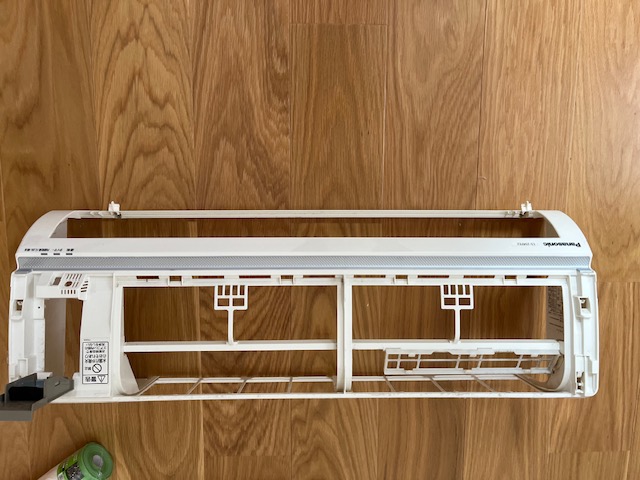 まずコンセントを抜いて、エアコンの前面パネルや小部品を外し、エアコン本体のボディを取り外します。