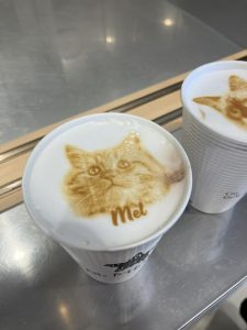 ラテアート付きの飲み物を注文すると、好きな猫の似顔絵が選べます!