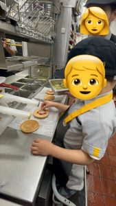 キッチンでハンバーガーやポテトジュースのセットを作らせてもらうことでできます🍔🍟