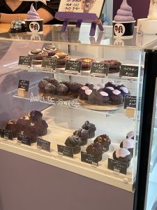 パープル基調のお洒落な外観と店内に、ウベスイーツがずらりっ!