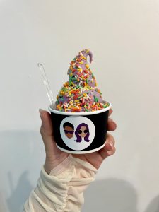 悩んだ末、ソフトクリームのウベ味に、カラフルトッピングを🌟
