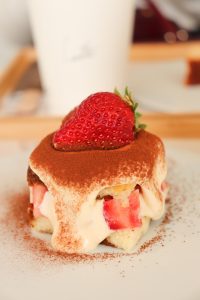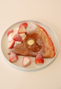 優しい甘さのきび砂糖をかけ、中には手作り苺ジャムが入った一品!
