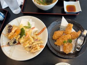 今回はうどんと刺身定食と天ぷらを注文しました!
