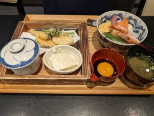 海鮮丼は新鮮でのネタも厚く、天麩羅もサクサクでした。