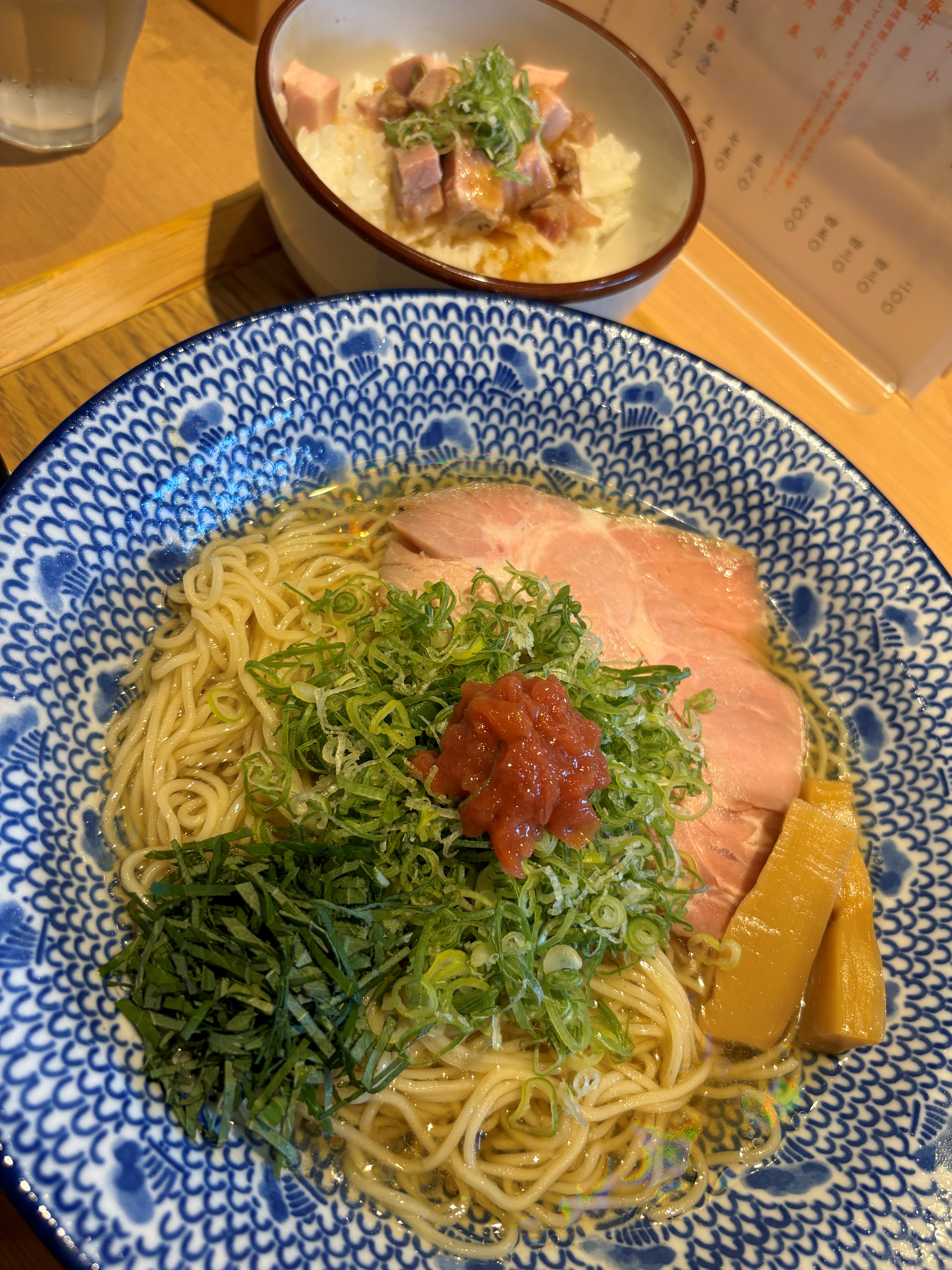 私は期間限定の冷やし梅塩そばと焼豚丼を注文しました!
