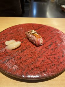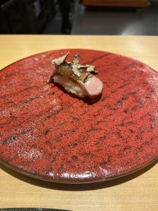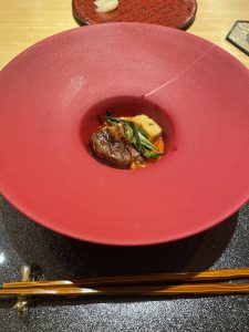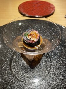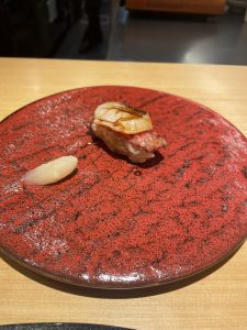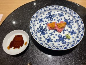 《和牛・真鯛の昆布〆・天使海老磯部巻き》