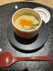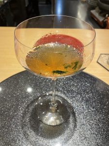 《大吟醸グラスで呑む 27℃の牛出汁スープ》