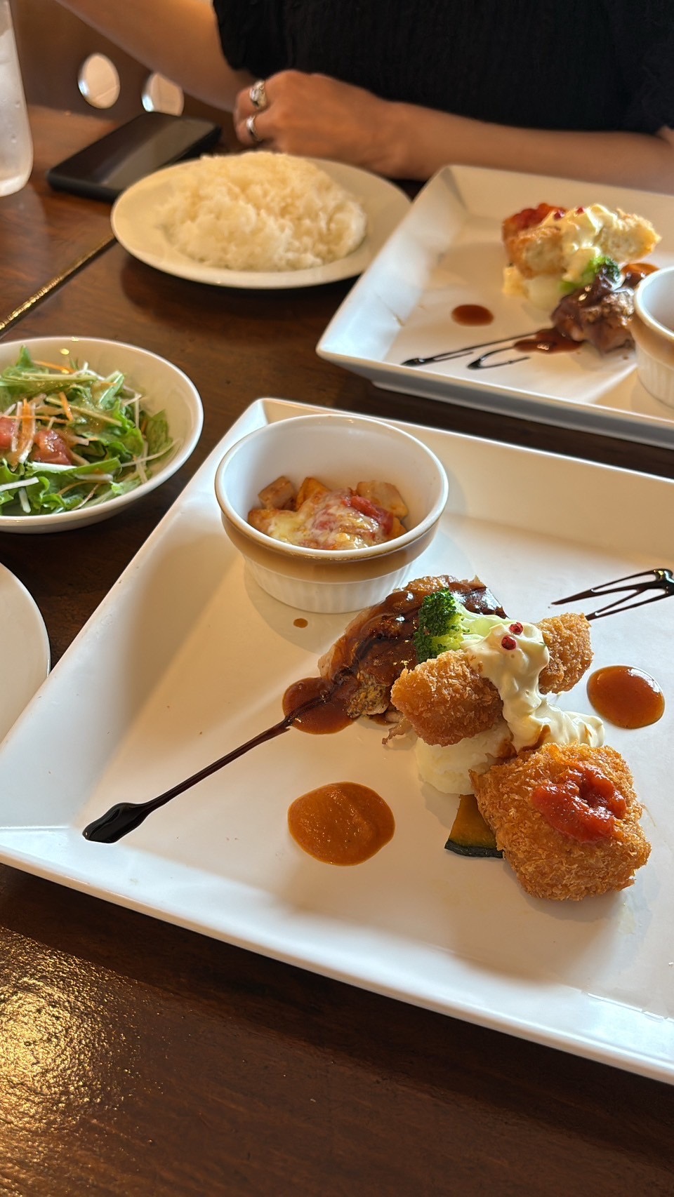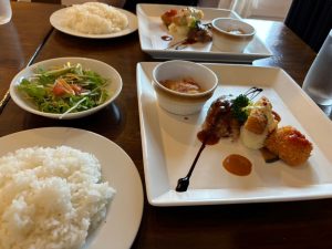 パンかライスか選ぶことができて、サラダも付いてきます。