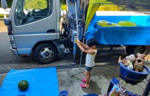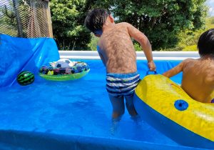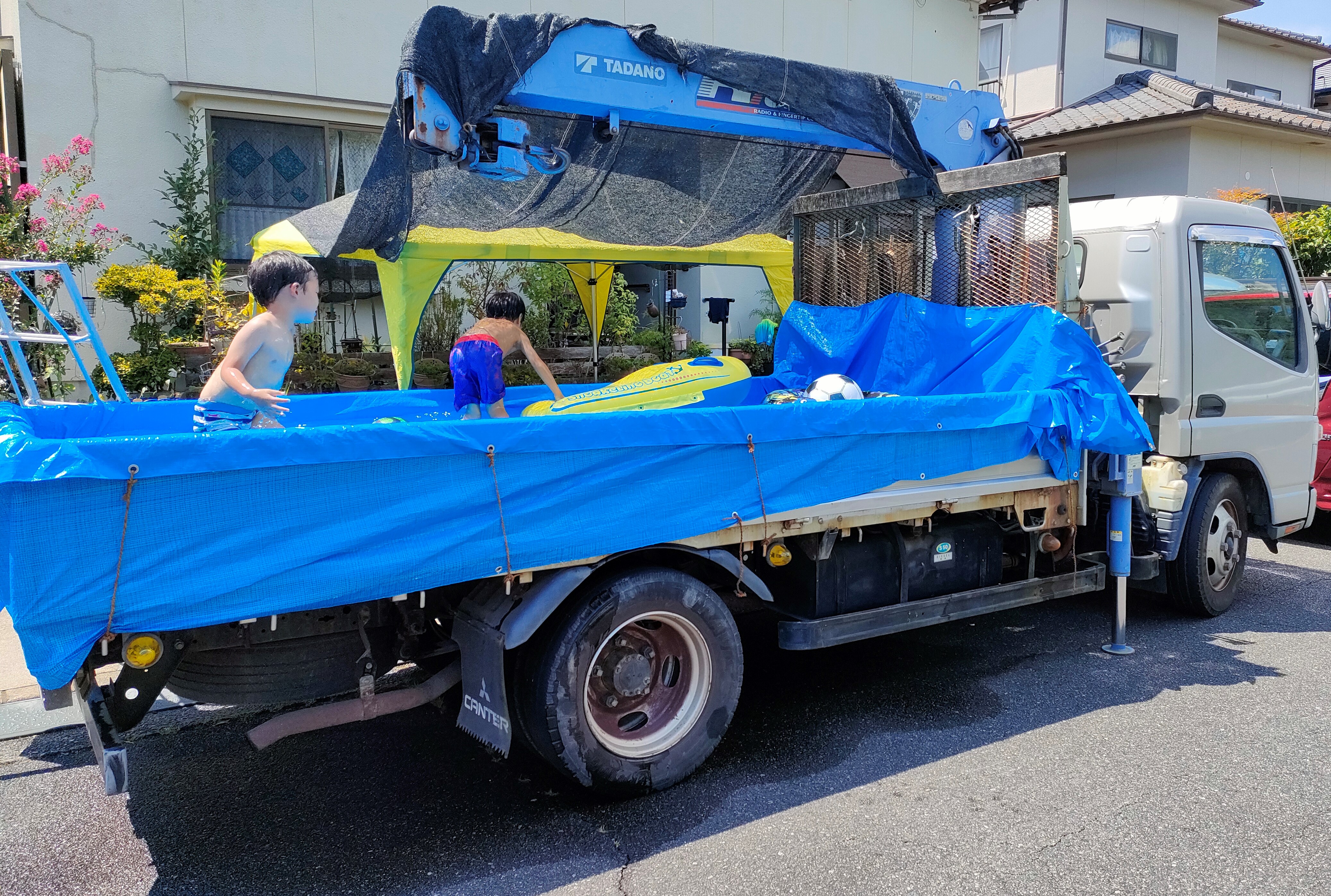プールにし、子どもも大人も入って遊びます!!🚛💦👨👨👧👦