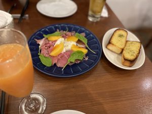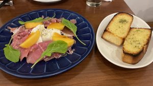 初めに注文した料理は、「生ハムとモッツァレラチーズの、、」