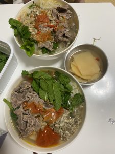 「ブン」はフォーと並んでベトナム人の主食となっているお米の麺で「ボー」は牛肉を指します。