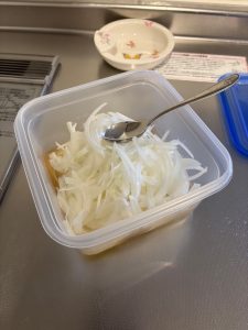 そこでまずは情報収集。高血圧をどうにかするべくお客様に話を聞いてみると、血圧にはやはり「玉ねぎ」が良いよ、と。酢漬けにすれば生でも食べやすいよ、と。おまけにお酢には自律神経を整える効果もありますよ、と。
