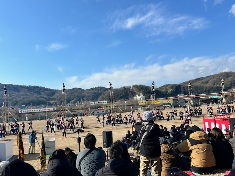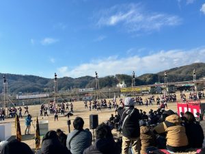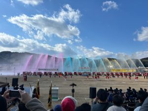 高校生のチアダンスや音楽隊が演奏する後ろで