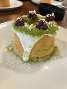 シフォンケーキが柔らかくてフワフワで、ブルーベリーかワインか何か、お酒につけてある味がしました!(運転は友人なのでご安心ください)