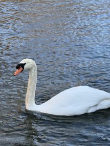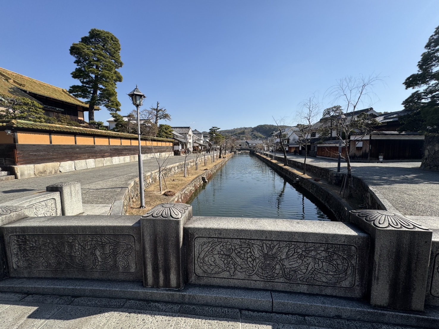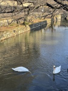 町の中央を流れる倉敷川には、白鳥が泳いでいました。