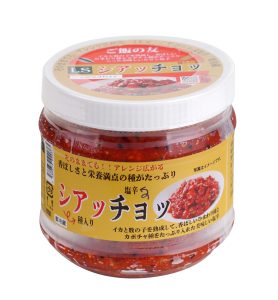 甘辛いヤンニョムだれの中にイカやタコの塩辛、数の子(粒々)、