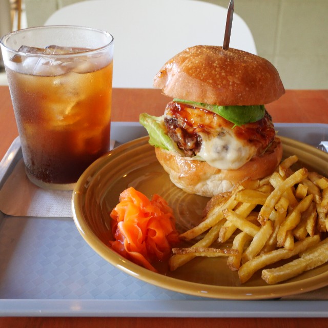 私はストラトバーガーを注文したのですが、食べるのに苦労するほどのボリュームと、具材にはアボカドやモッツァレラチーズが入っておりとても美味しかったです。
