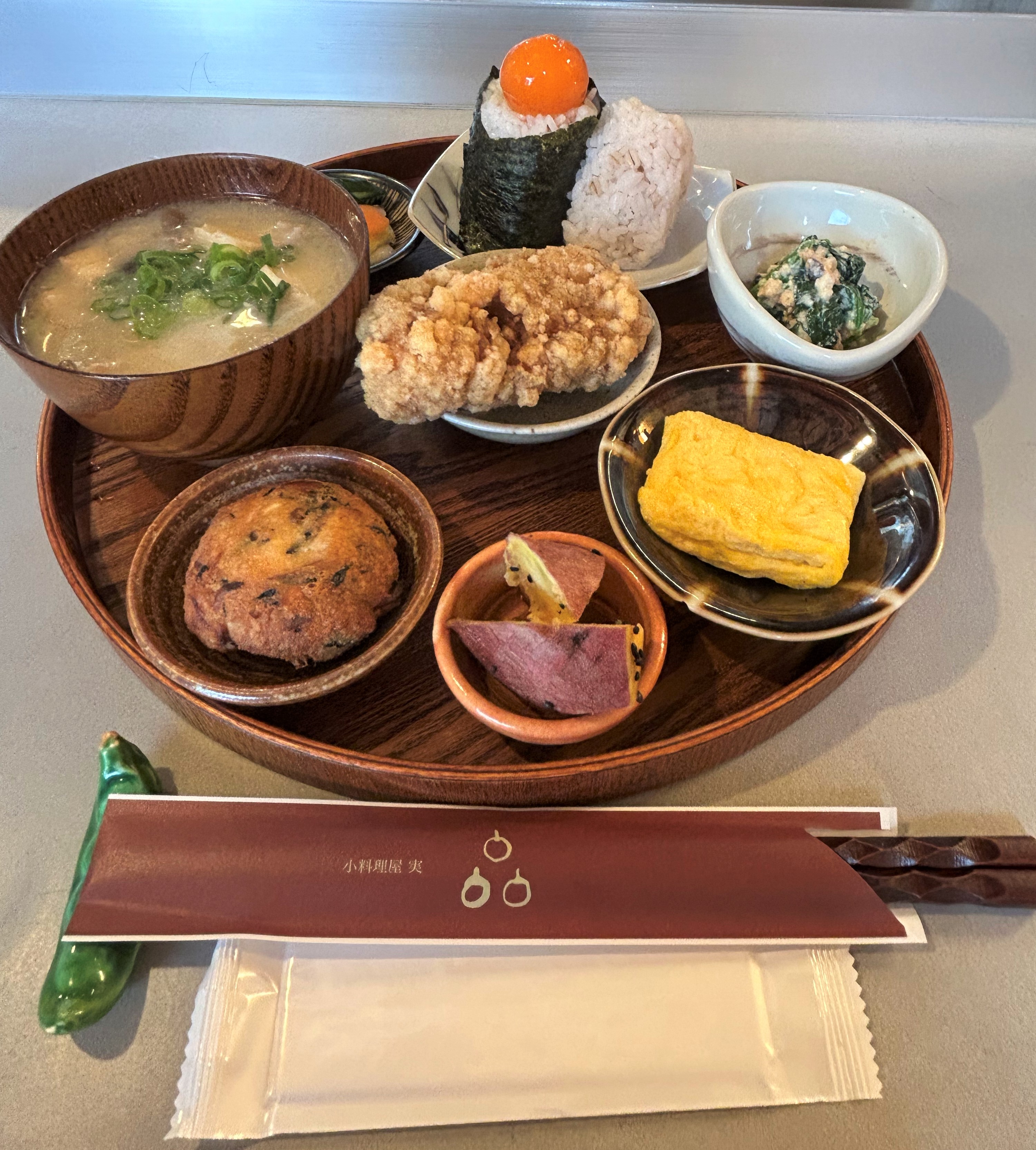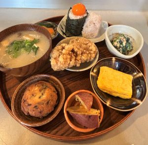 おにぎりは 十五穀米が1つ 塩むすびが1つ