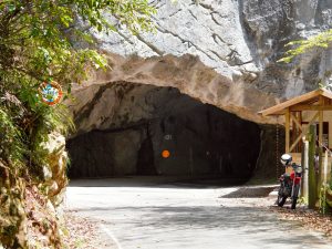 大きな岩があり、昔の銅山を復元した笹畝坑道を見学できます👀