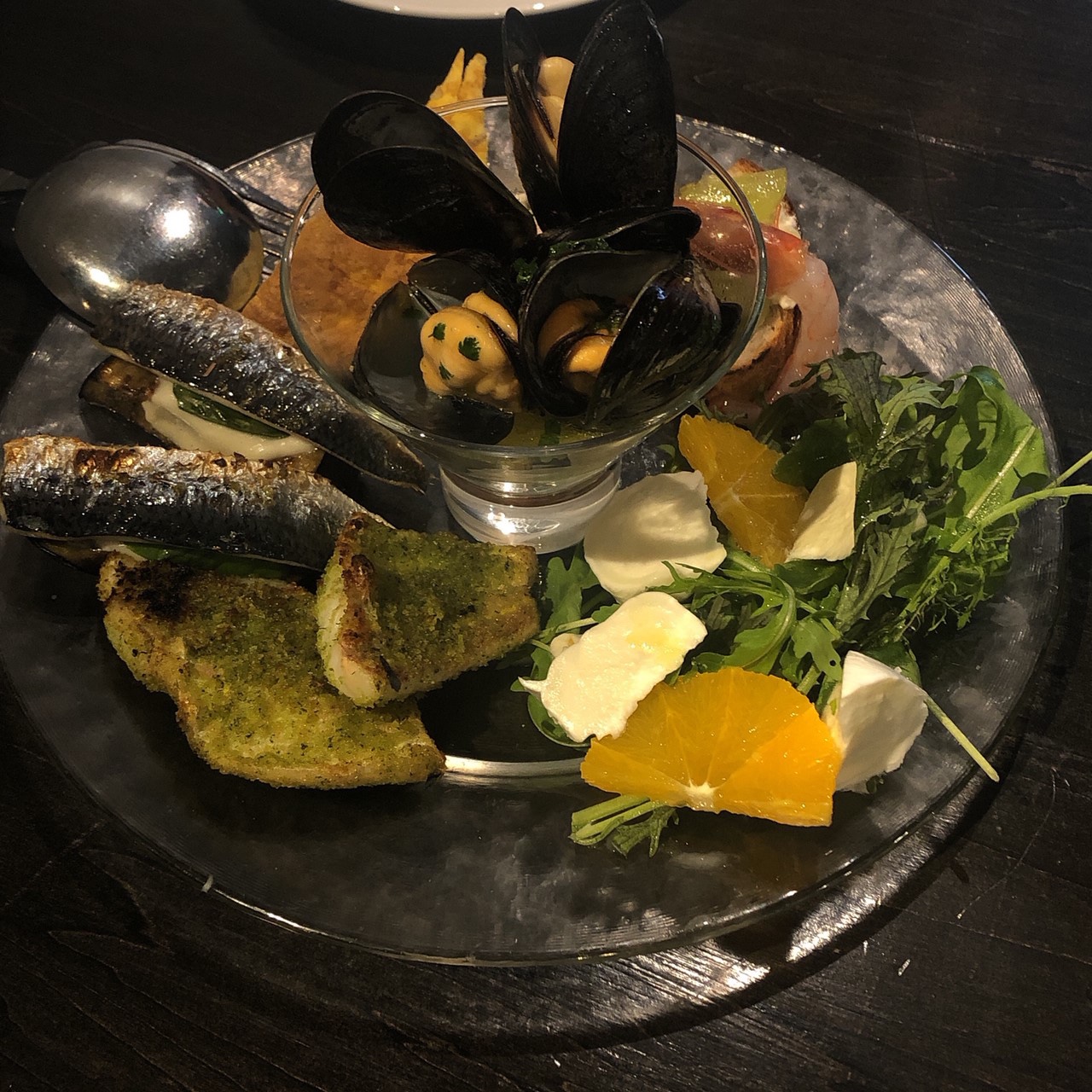 ↑これが前菜で、エビとマスカットがバケットに乗っているものとか不思議なものが多かったですが