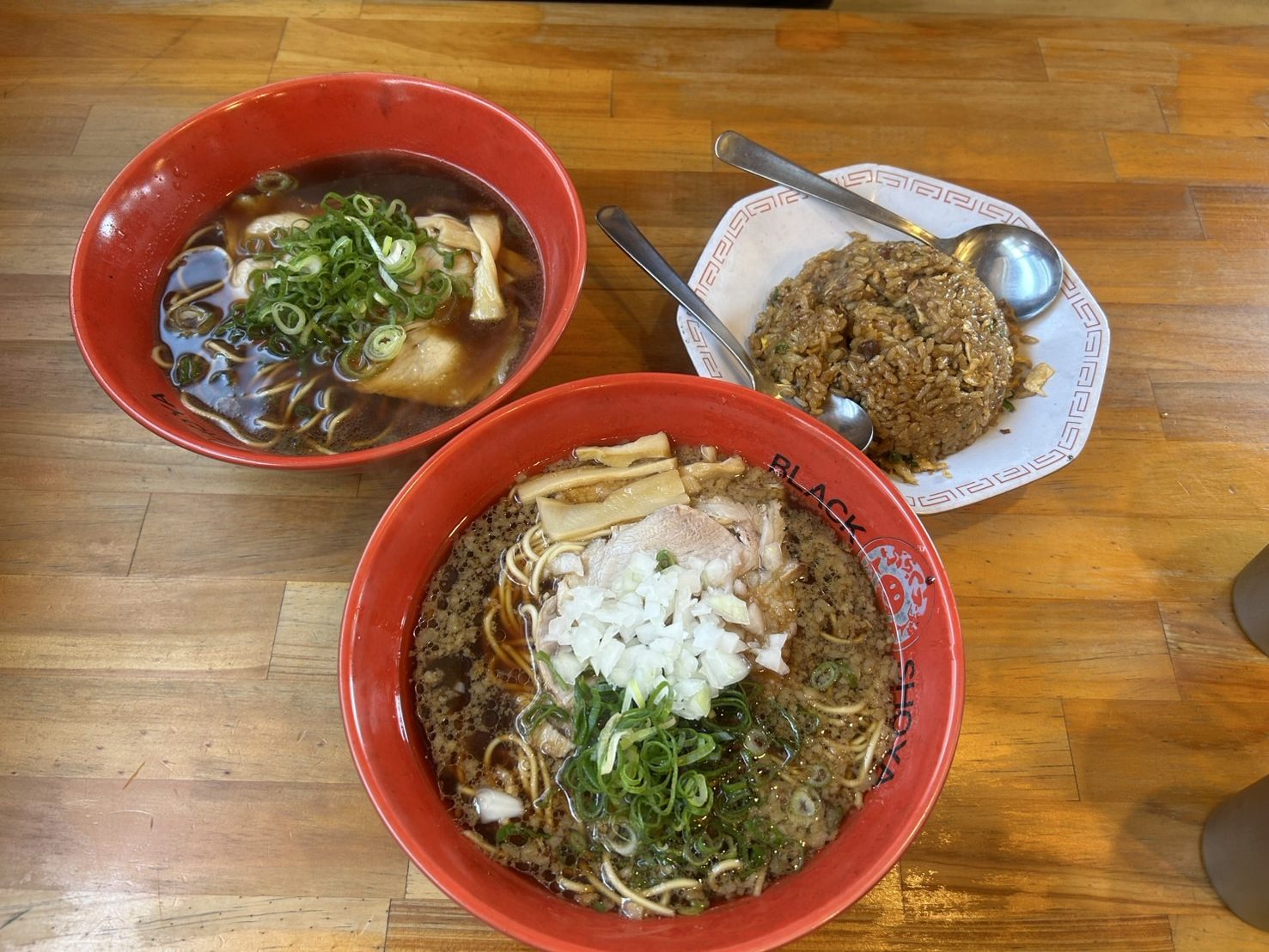 そして、この日は人気NO.1の背脂ぶらっくらーめんと炒飯を頂きました。