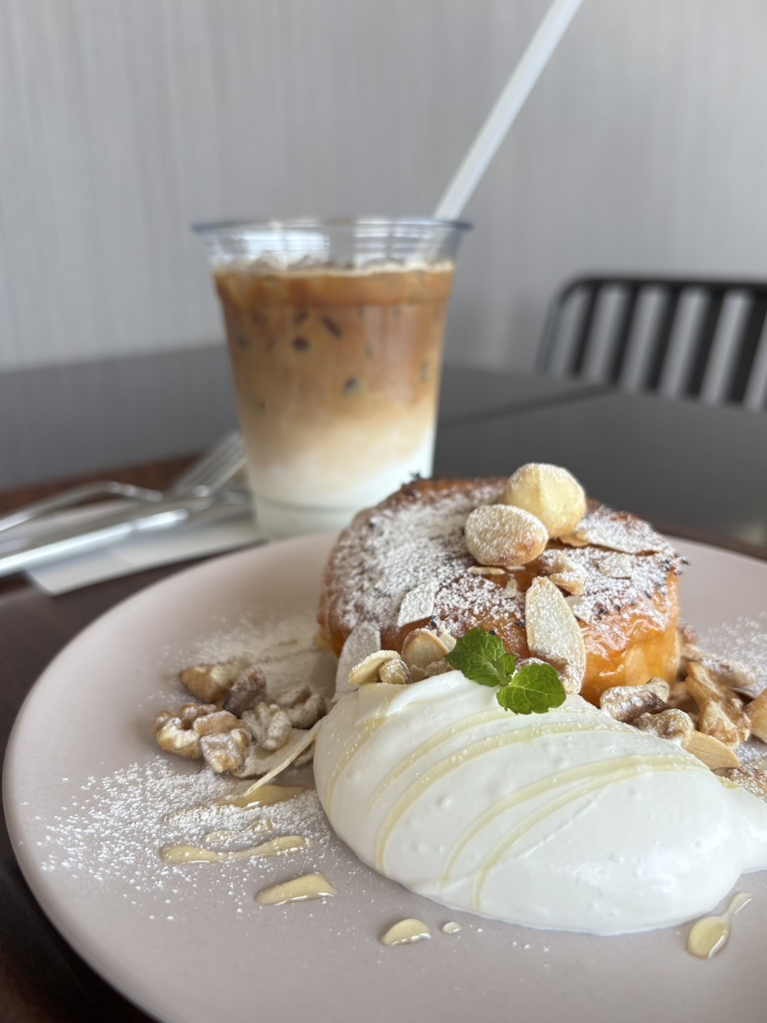 トッピングのナッツや生クリームとも