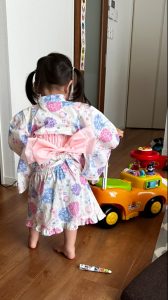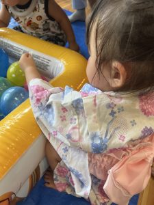 初めてのヨーヨーすくいは、やり方もわからず紐をびしゃびしゃにして遊んでいました🤭