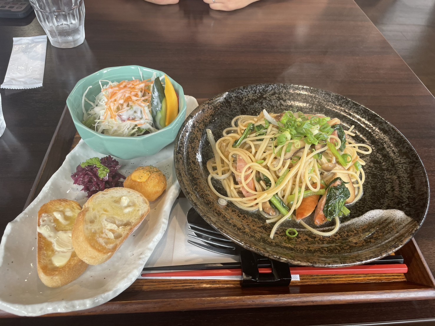 パスタはキノコとソーセージの和風パスタで、あっさりしていて本当に美味しかったです🥰💕