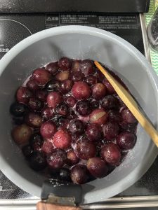 ここからは地道にブドウの皮を剥きます。(この作業が、なかなか大変です💦)