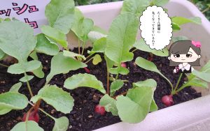 今回は前回のブログ(こちら)の続き、観音店の事務員4人でラディッシュ栽培の発芽してからの成長過程と間引き・害虫対策についてご紹介いたします🐛🥬💖