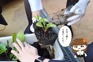 まだ成長できていないペットポトルで育てていた苗をプランターへ移動していきます🌱👋