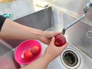 りんごは計4つ採りました!!りんごを並べて撮りたかったのですが、夢中になって写真を撮ることを忘れていました📷😬💦採ったりんごは水でしっかり洗います🍎✨同期が4つすべて綺麗にしてくれました✨