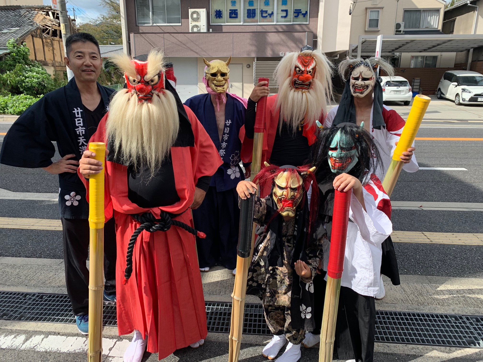 毎年恒例で、鬼の格好をした集団が廿日市店へやってきます(・_・;)