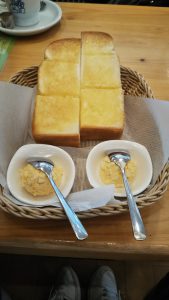 午前中はコーヒーを注文するとトーストの半分がついてくるサービス。