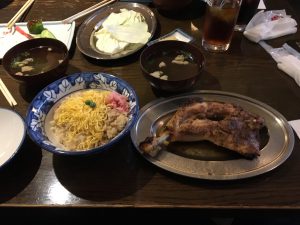 骨付鳥の「ひなどり」と、「とりめし」を食べました。