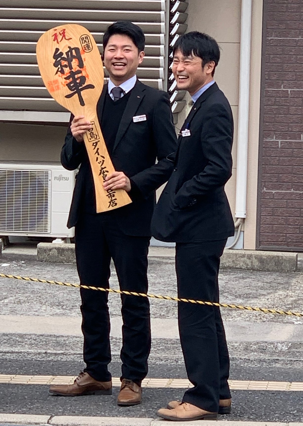 廿日市店のスタッフも、納車用の大きなしゃもじを持って応援しました!!