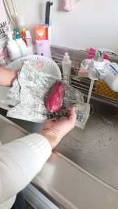 お芋を水で濡らして
