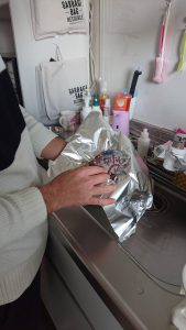 アルミでしっかり巻いてお芋の準備はオーケー★