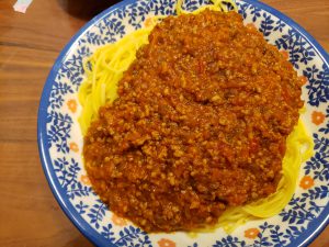 一日目はトマトソース、二日目はミートスパゲティに !(^^)!