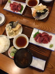 今回食べたのは天ぷらとマグロの刺身の定食でした。