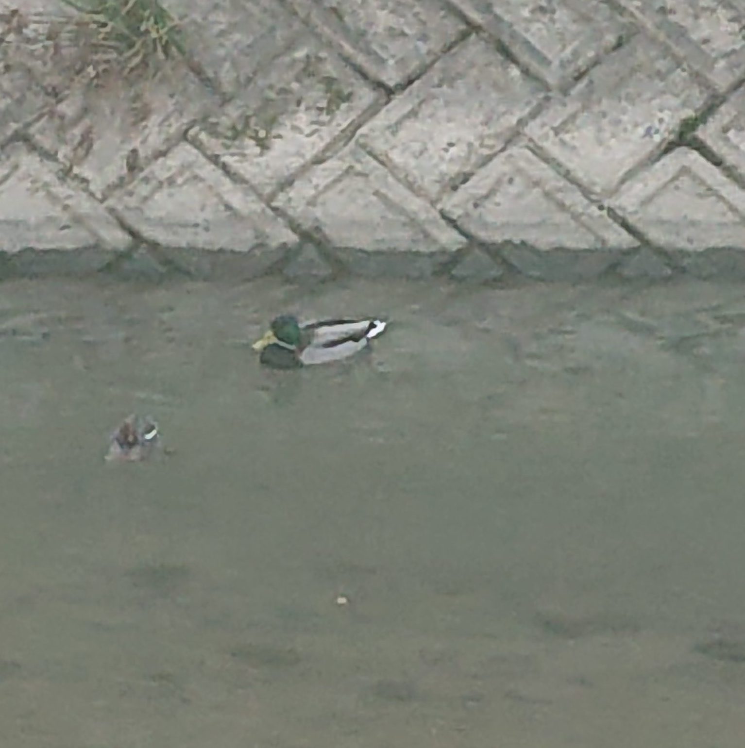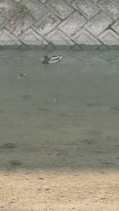 先日、子供と自宅前の川辺を散歩していると、カモの親子が泳いでいました。