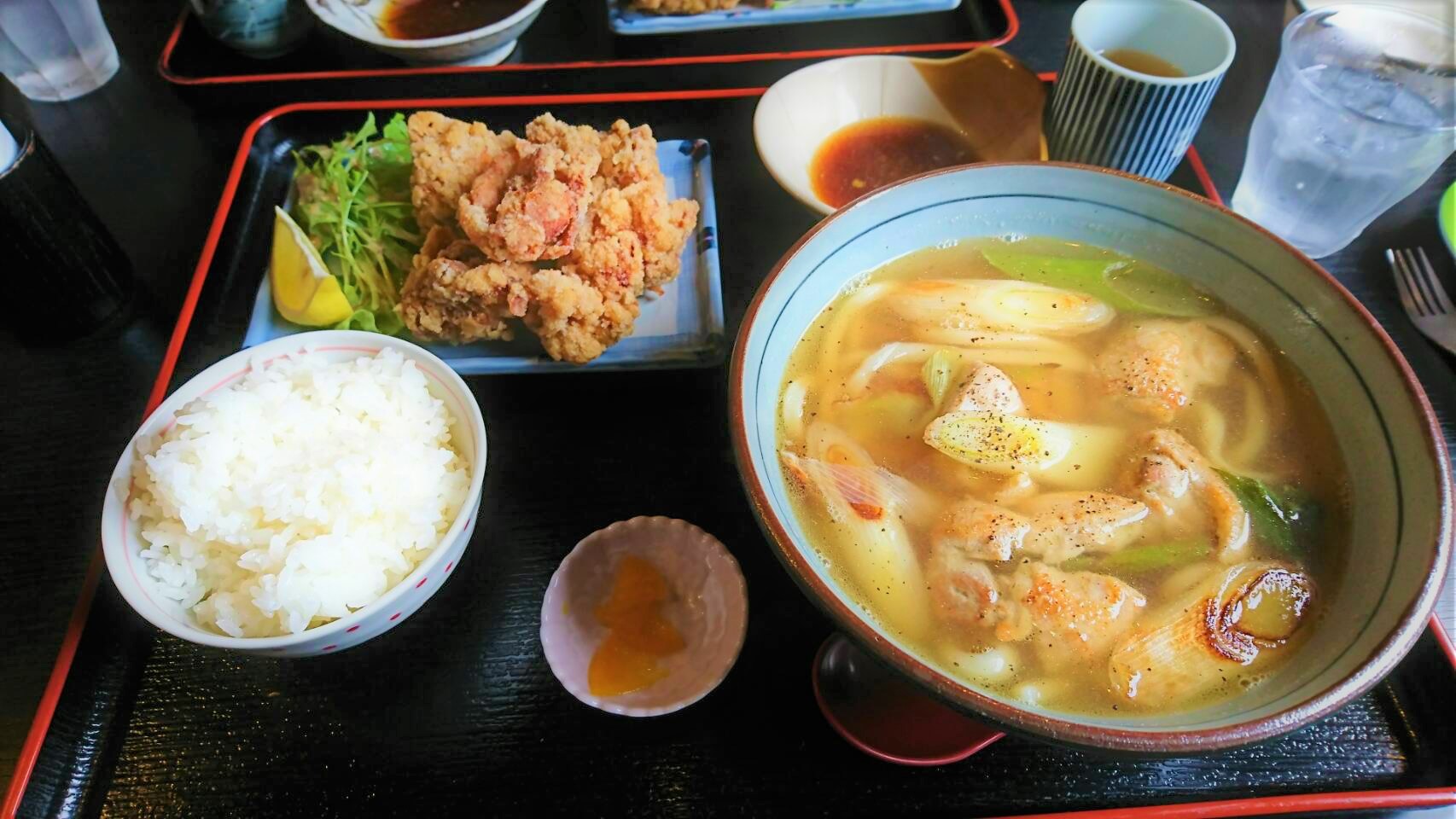 私のお勧めは唐揚げセット!めちゃくちゃうまい!うどんを鳥南蛮うどんに