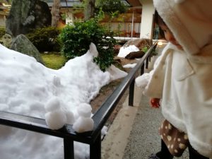 旅館の中庭には雪が残っていて小さい雪だるまを子供が作っていましたΣ(・ω・ノ)ノ!