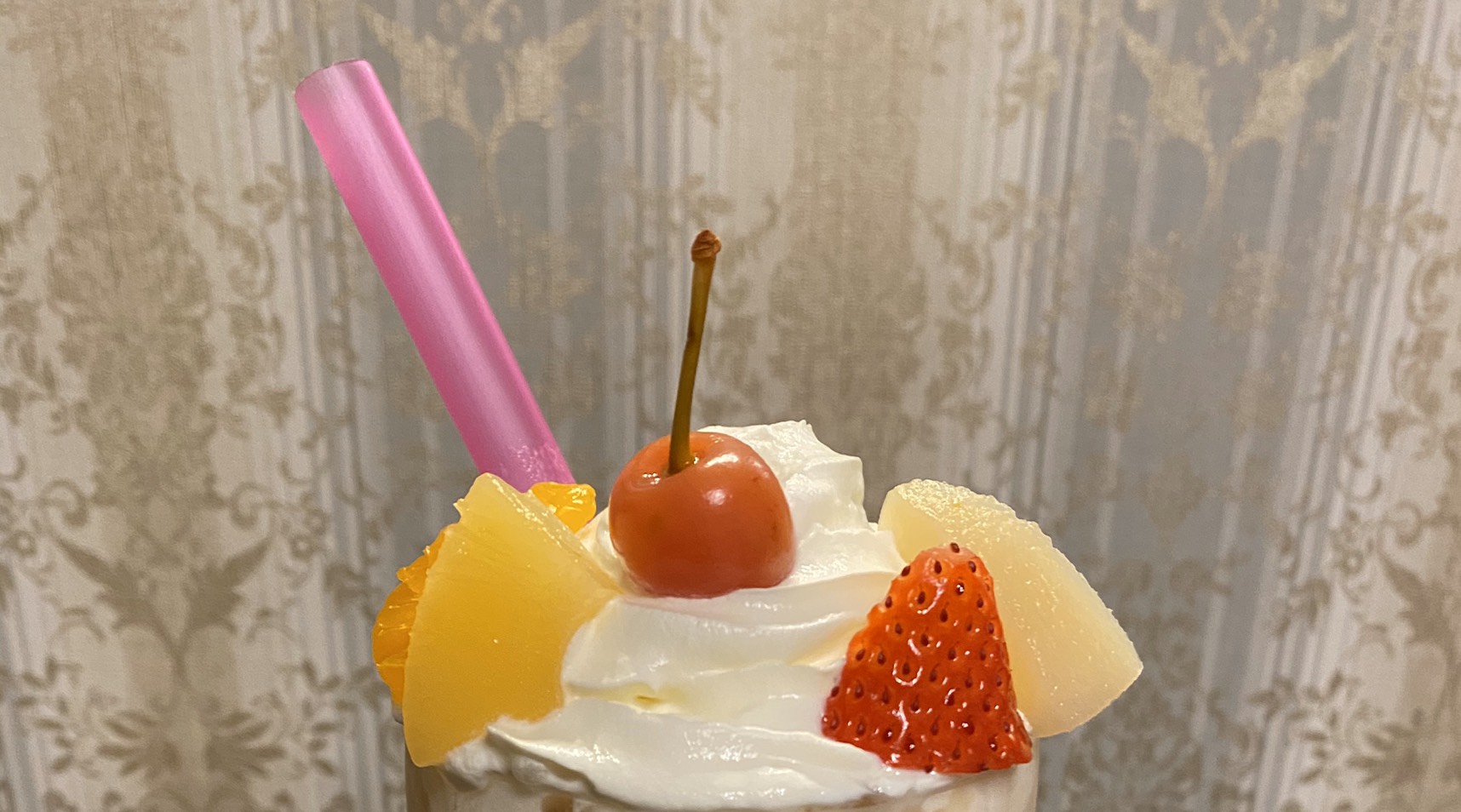 ただ、ドリンクの上にフルーツを盛りつけているので重さに耐えれずどんどん沈んでいきました…(´・ω・`)