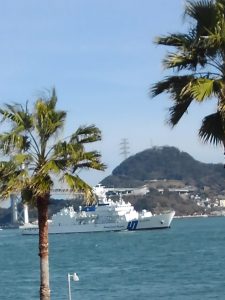 翌日の帰路途中に立ち寄った唐戸市場で海上保安庁の巡視船に遭遇