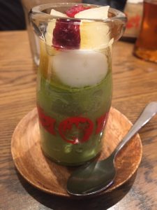 パフェのようになっていて、フルーツや白玉がのっていました♪