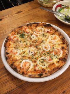 シーフードのピザに、手打ち麺のジェノベーゼパスタ( *´艸`)