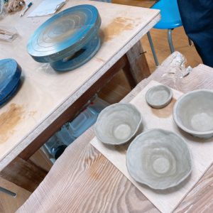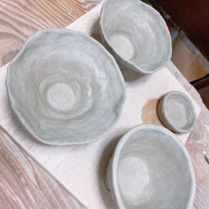 粘土を細長く丸めて積み上げるような方法でのお皿作りに挑戦しました!