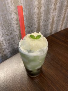 アイスを支えるために氷をたくさん入れたので、クリームソーダが薄くなってしまいました…(;・∀・)