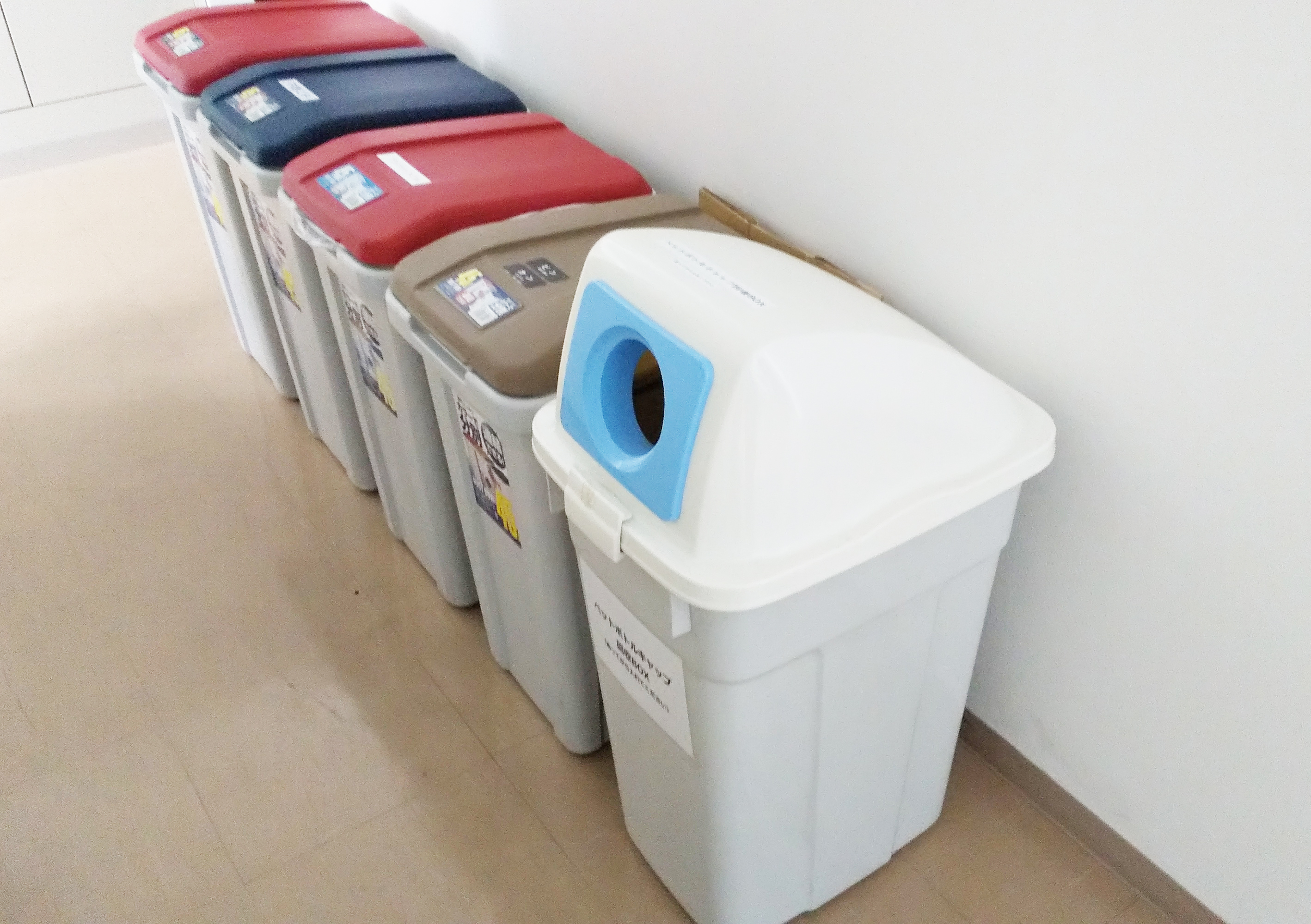 社員が誰でもいつでも参加しやすいように、ペットボトルのゴミ箱横に設置しています。